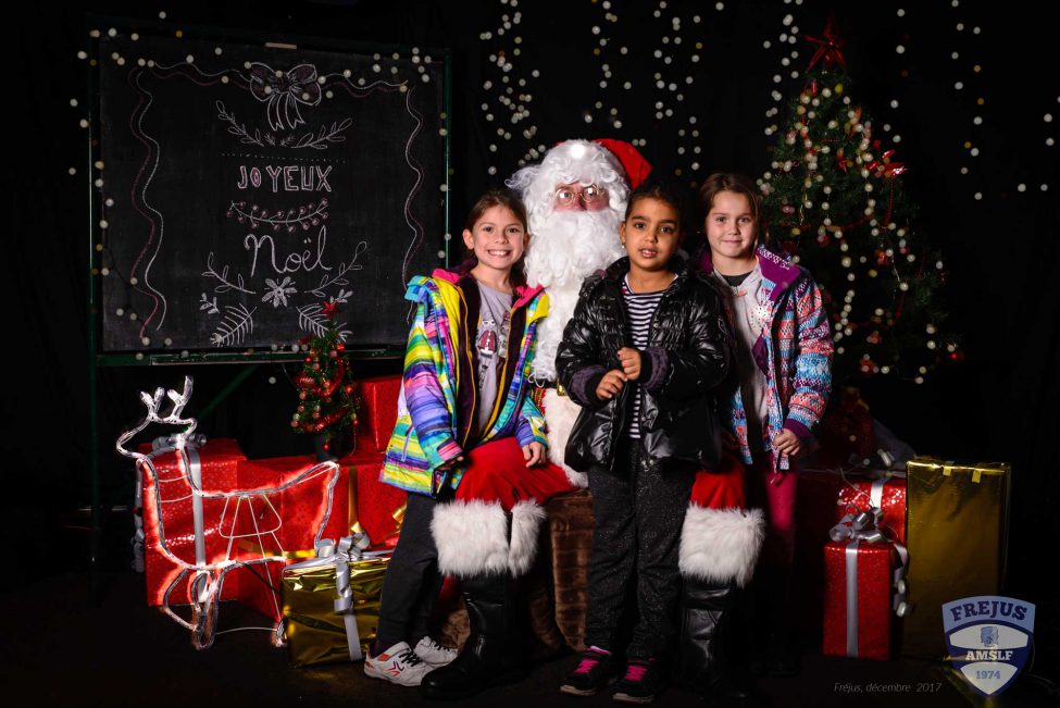 Une surprise attendait les enfants lors de leur entrée dans la salle pour l’arbre de noël 2017: le Père Noël avec qui les enfants ont été pris en photos (Enfin pour ceux qui le souhaitaient).