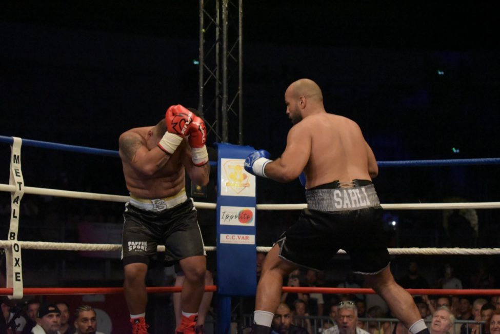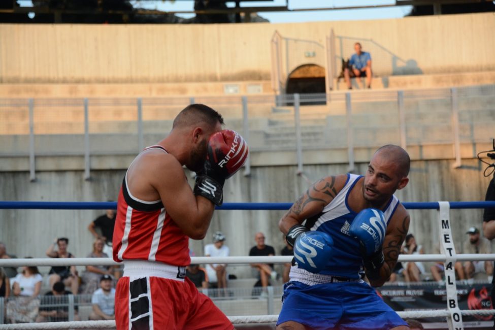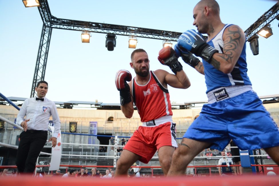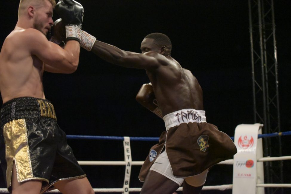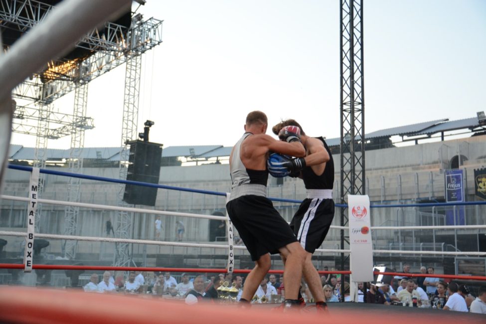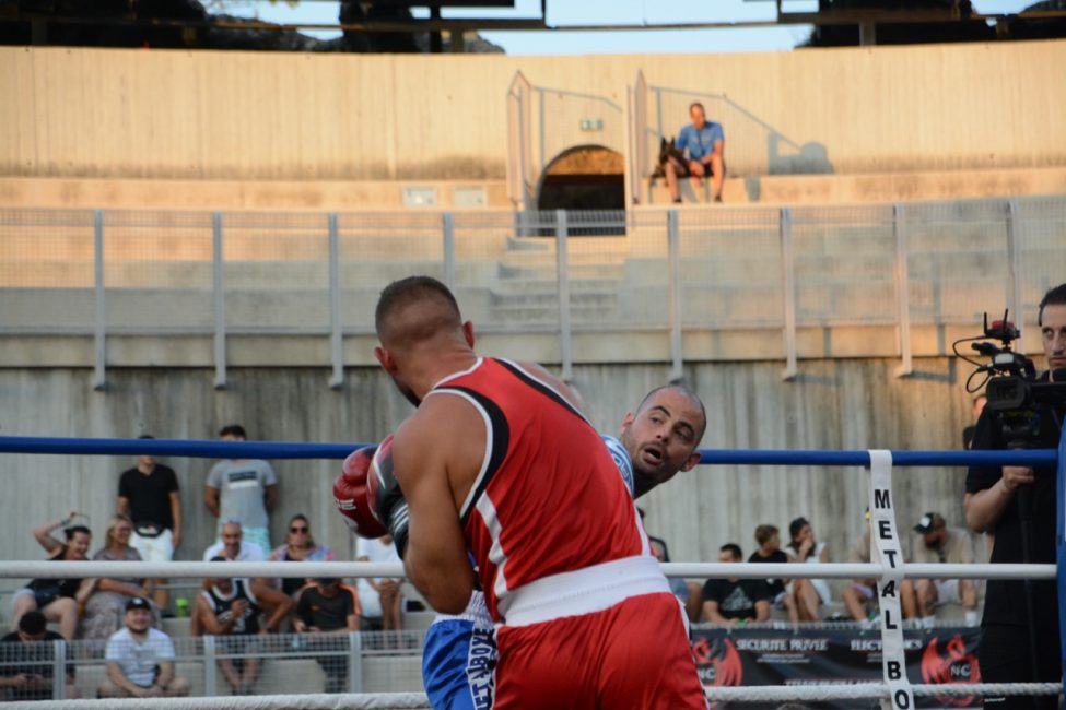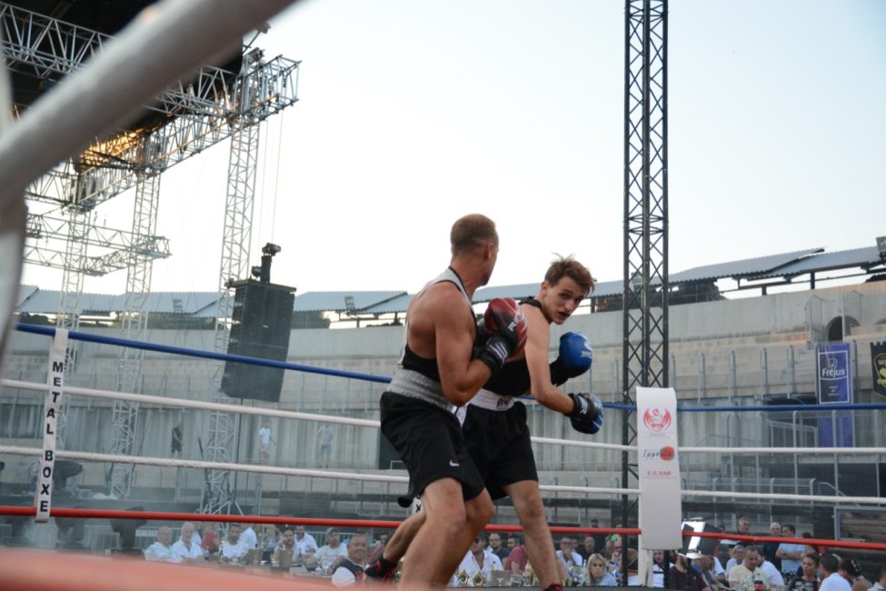 Et pourtant tout s’était déroulé de la plus belle des manières dans une salle pleine ! Les enfants de l’école de boxe avaient ouvert la soirée avec de jolis assauts en boxe éducative, les combats amateurs de la soirée avaient été très intéressants. Belle victoire de notre amséliste Mekki Sahli (+91 kg) aux points, Henri Ansquer est battu quand à lui, le combat féminin de la soirée à vu Wassila Lkhadiri ( Hyères) s’imposer face à Romane Moulai ( Marseille) . Enfin chez les professionnels Kevin Sadjo Lel s’impose face au géorgien Otari Gogoberishvili (arrêt de l’arbitre / blessure) . Jérémy Parodi (Hyères) s’est montré expéditif face à Gorgi Andonov avec un adversaire mis au sol plusieurs dans le second round. Il faudra donc patienter un peu pour revoir Gus Tamba boxer sur ses terres ! Un grand bravo à toute la section boxe et à leurs partenaires pour l’organisation de cette soirée .. Place aux images
