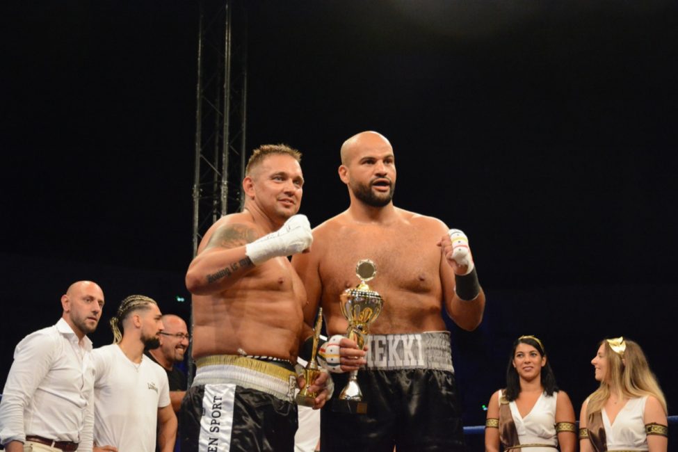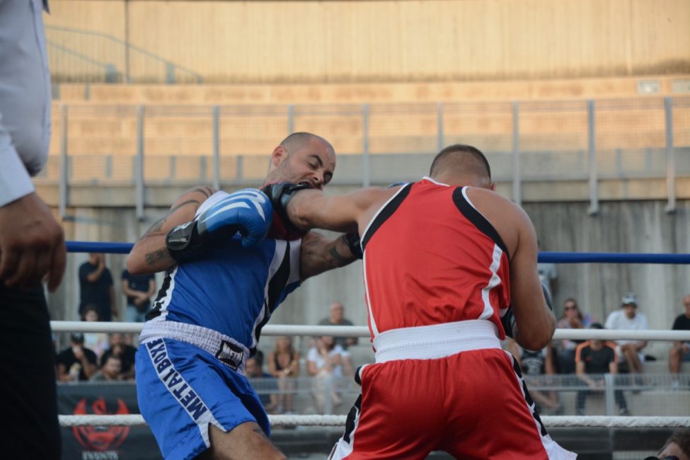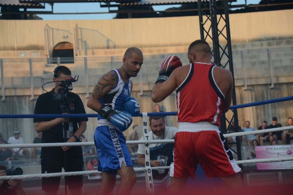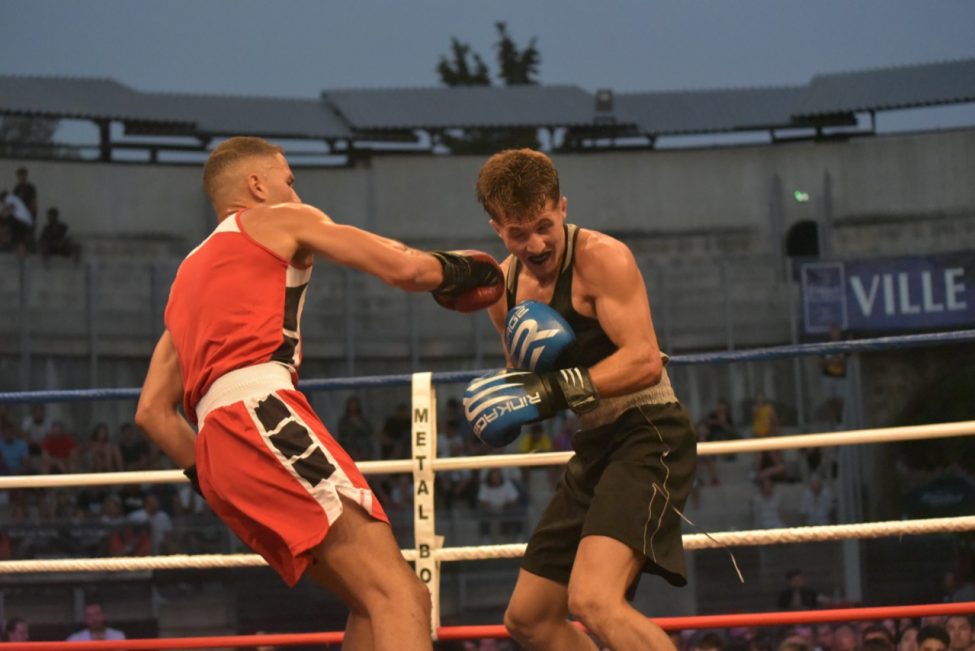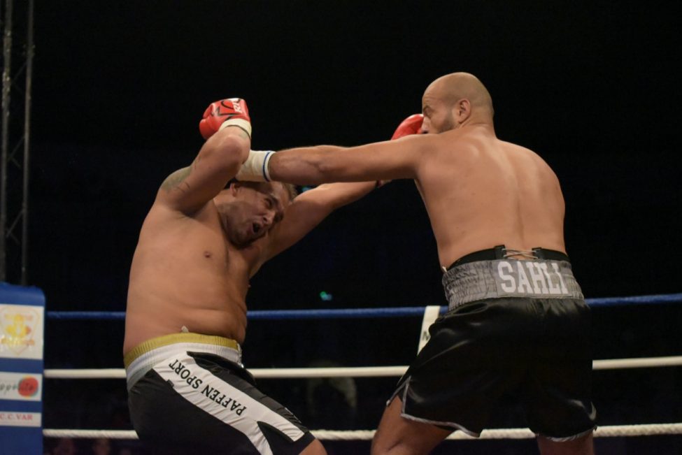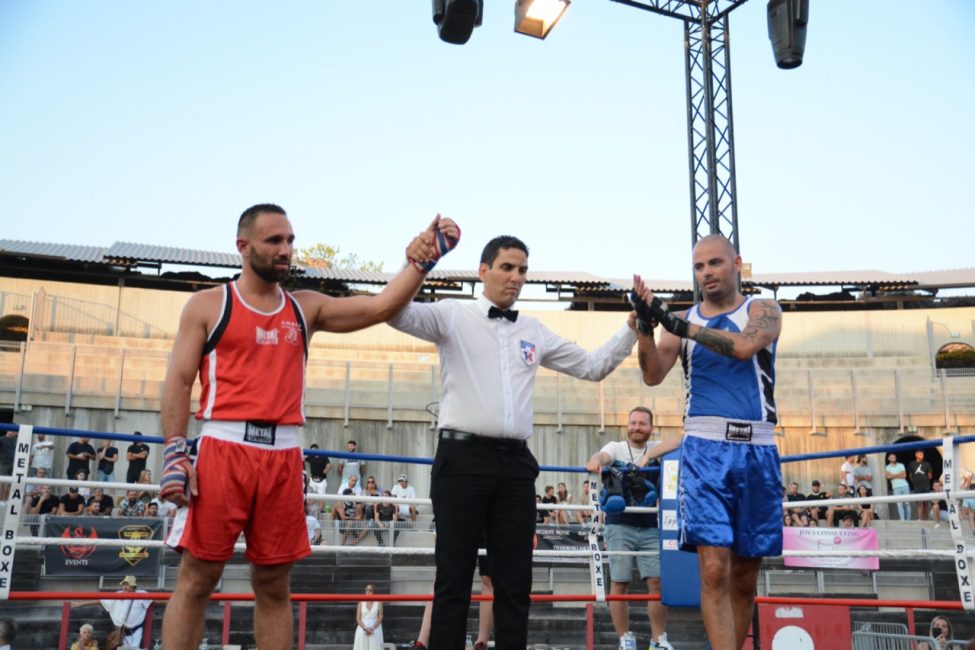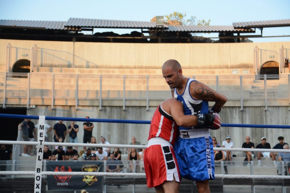 Et pourtant tout s’était déroulé de la plus belle des manières dans une salle pleine ! Les enfants de l’école de boxe avaient ouvert la soirée avec de jolis assauts en boxe éducative, les combats amateurs de la soirée avaient été très intéressants. Belle victoire de notre amséliste Mekki Sahli (+91 kg) aux points, Henri Ansquer est battu quand à lui, le combat féminin de la soirée à vu Wassila Lkhadiri ( Hyères) s’imposer face à Romane Moulai ( Marseille) . Enfin chez les professionnels Kevin Sadjo Lel s’impose face au géorgien Otari Gogoberishvili (arrêt de l’arbitre / blessure) . Jérémy Parodi (Hyères) s’est montré expéditif face à Gorgi Andonov avec un adversaire mis au sol plusieurs dans le second round. Il faudra donc patienter un peu pour revoir Gus Tamba boxer sur ses terres ! Un grand bravo à toute la section boxe et à leurs partenaires pour l’organisation de cette soirée .. Place aux images