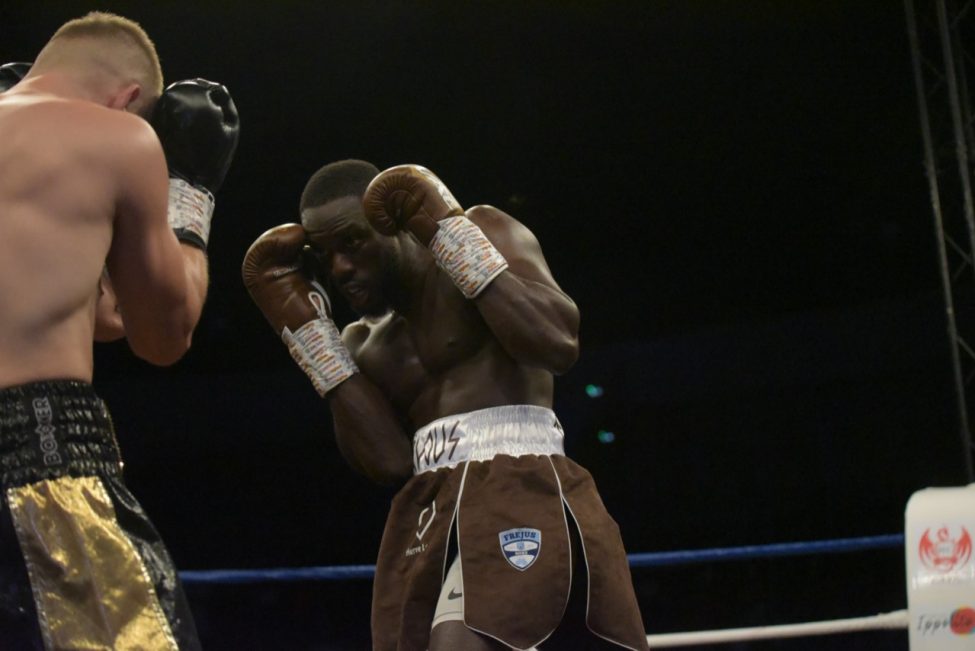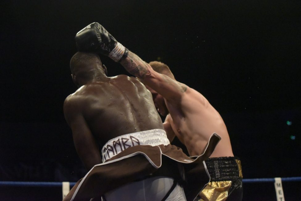 La fête était belle à la salle Jean Vilain jusqu’au moment de la mauvaise surprise de la soirée: l’annulation du combat phare de la soirée qui devait opposer notre Gus Tamba à Matiouze Royer, ce dernier déclarant forfait au dernier moment, gâchant ainsi la joie des amoureux de la boxe présents dans la salle.