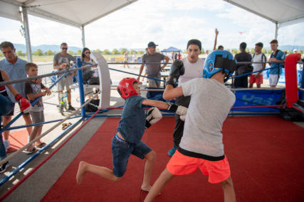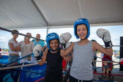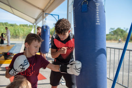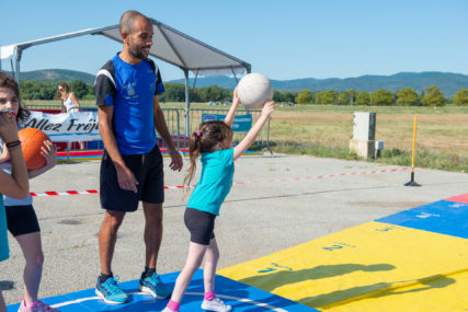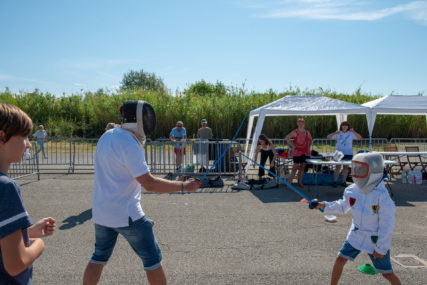 Les nombreuses animations ont permis aux enfants de tester les sports proposés par le Club: certains se sont initiés au saut à la perche et à l’athlétisme, à la boxe, d’autres on pu se tester sur un parcours de VTT avec obstacles, tester l’escrime, découvrir la Gymnastique Artistique, marquer leurs premiers paniers au basket, mettre leurs premiers buts au handball, ou rêver de faire leur baptême de saut en parachute.