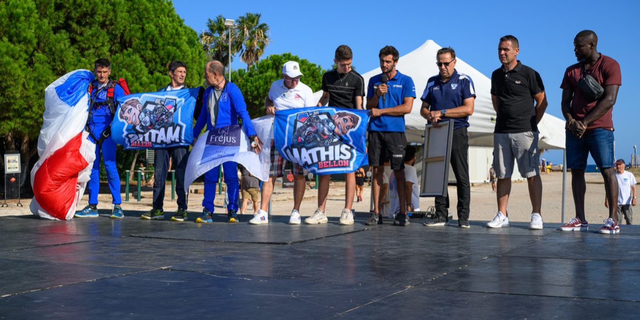 Ce dimanche, jour du Forum des associations, était donc l’occasion d’organiser en hommage à la hauteur de que méritait Mathis. Même si tous n’ont pas compris cela, l’on saluera le geste des parachutistes de la section amséliste, Marc Botti en tête, qui sont descendus avec un drapeau représentant le sticker créé pour Mathis.