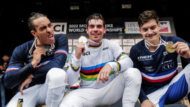 Le VTT français est sans conteste parmi les meilleurs au monde. Sur un contingent fort de 7 coureurs au départ, et surtout sur leurs terres, aux Gets (Haute-Savoie), les Tricolores ont placé trois des leurs sur le podium, Loïc Bruni sur la plus haute marche, entouré d’Amaury Pierron à sa droite et Loris Vergier…